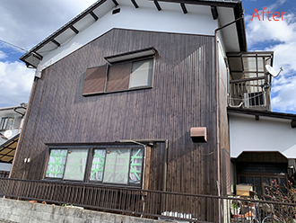 西陽や、強風の当たりが強い西側の外壁(焼き板)
