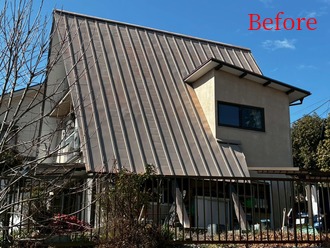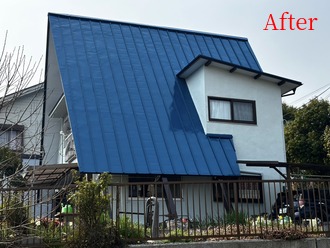 【担当のコメント】 今まで懇意にされていた他社様がある中、話が弾みこの度は任せて頂けました。 かなり急勾配な屋根でしたが、屋根足場を組ませて頂き、安全に丁寧に作業しました。 高台にある家なので雰囲気もガラッと変えて、爽やかな雰囲気に変わりました。 担当:森園